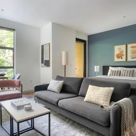 Die 1-Zimmer-Ferienwohnung Hollywood Studio W Pool Concierge Nr Shops Lax-1088 befindet sich im Viertel Hollywood von Los Angeles, 10 Fußminuten von der U-Bahn-Station Hollywood - Vine entfernt. Dank Fitness-Stunden können die Gäste ihre Freizeit abwechslungsreich gestalten.
